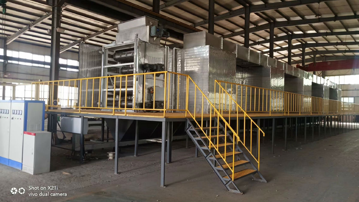 鏈網(wǎng)式污泥干化系統(tǒng)設(shè)備,由山東大學(xué)和山東省凱麟環(huán)保設(shè)備股份有限公司共同研發(fā)。該設(shè)備設(shè)計處理污泥60-100噸/天,適用于含水率60%的污泥干化至含水率30%的污泥顆粒,利用窯爐余熱對污泥進行系統(tǒng)干化脫水處理,在干化過程中不產(chǎn)生二次污染,同時干化后的污泥顆粒作為原料進行制磚,污泥含有一定熱量的有機物質(zhì),補充了高溫焙燒所需的熱量,降低了能源的消耗,真正達到污泥無害化、減量化和資源化利用的目的,是窯爐協(xié)同城市污泥資源化利用重要關(guān)鍵設(shè)備。